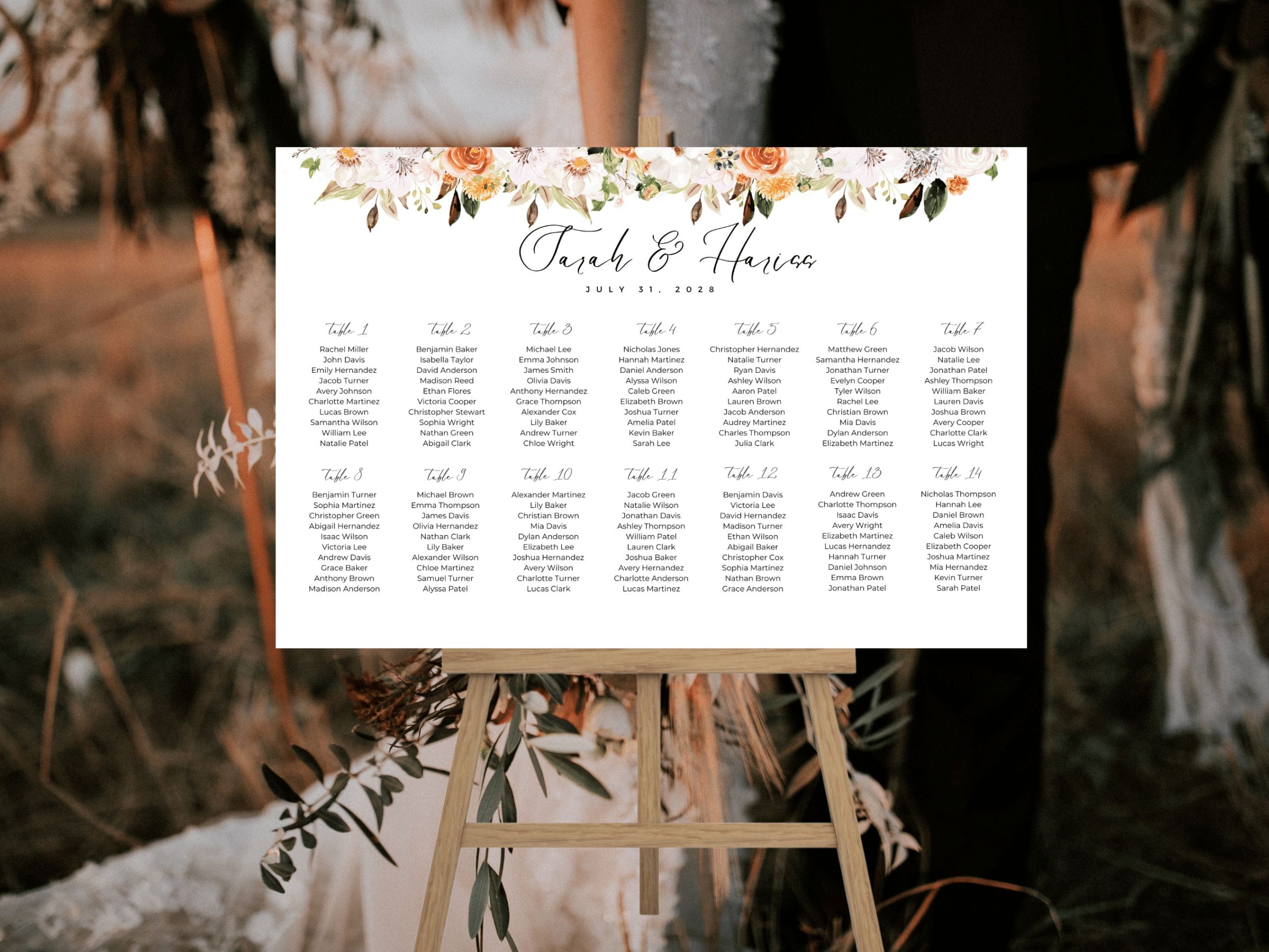 Keep your guests organized and on track with this stunning horizontal seating chart. With its Terracotta Boho Autumn design, it’s sure to be a hit with everyone.